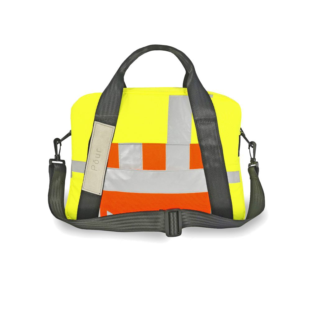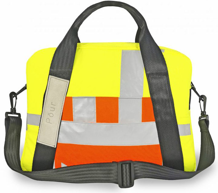 Workwear is the main source for Pōur bags, creating a durable and fashionable product. Vibrant colours and sturdy materials known to be used in workwear make Pōur bags stand out and last long.